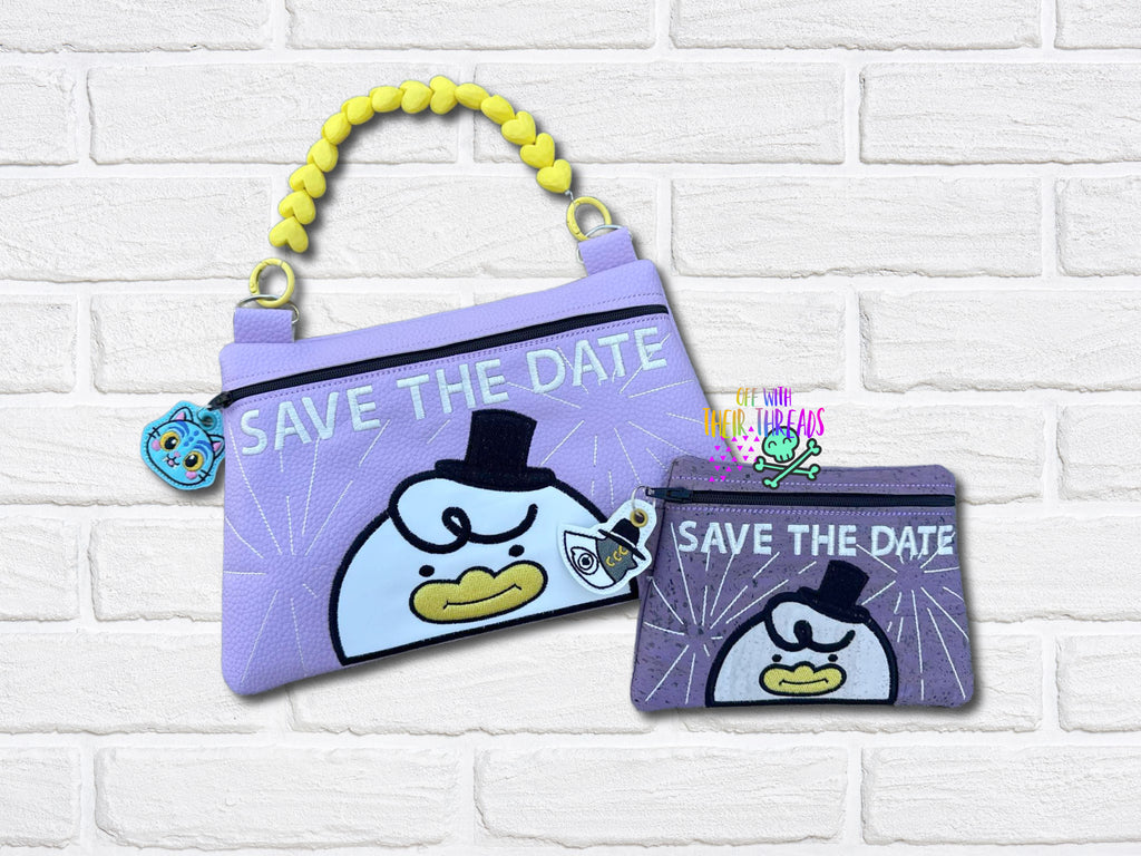 DIGITAL DOWNLOAD Applique Save The Date Clutch Applique Zipper Bag Lined and Unlined
