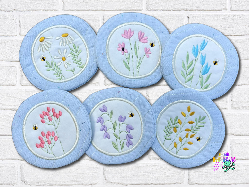 DIGITAL DOWNLOAD Applique Wildflower Quilted Coaster Bundle 2 SIZES INCLUDED ENVELOPE