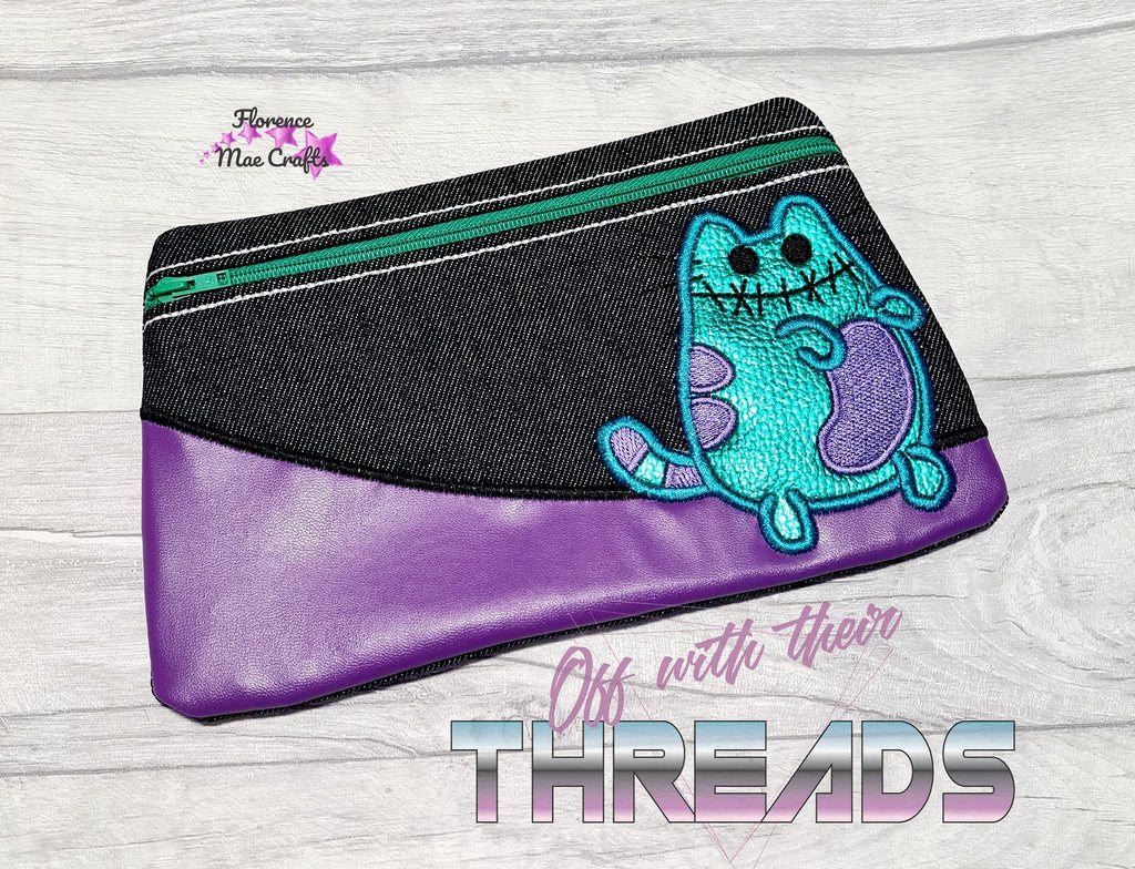 DIGITAL DOWNLOAD Monster Kitty Clutch Applique Zipper Bag Lined and Unlined