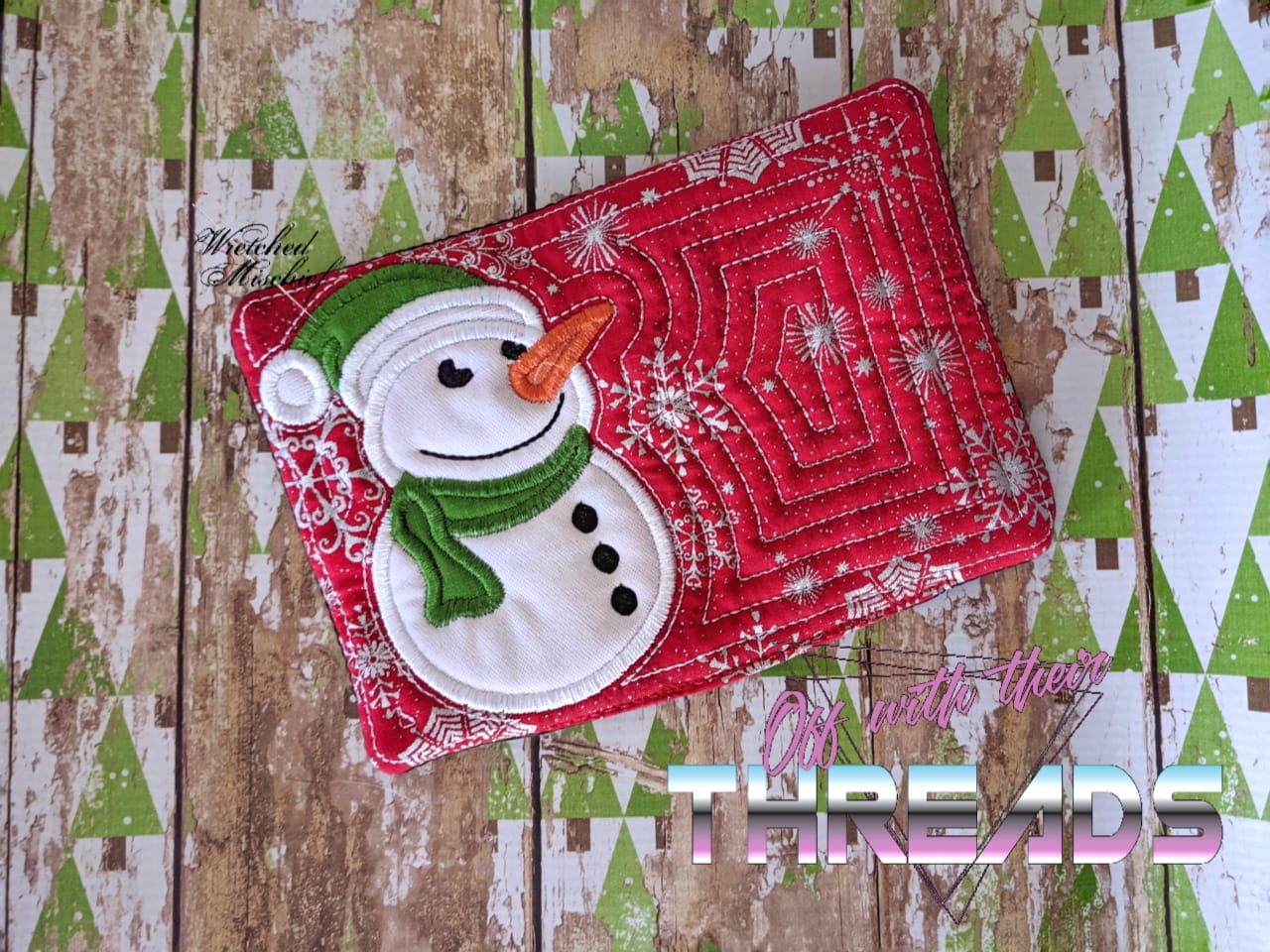 DIGITAL DOWNLOAD Snowman Applique Quilted Mug Rug Snack Mat Set 4 SIZES INCLUDED Coaster