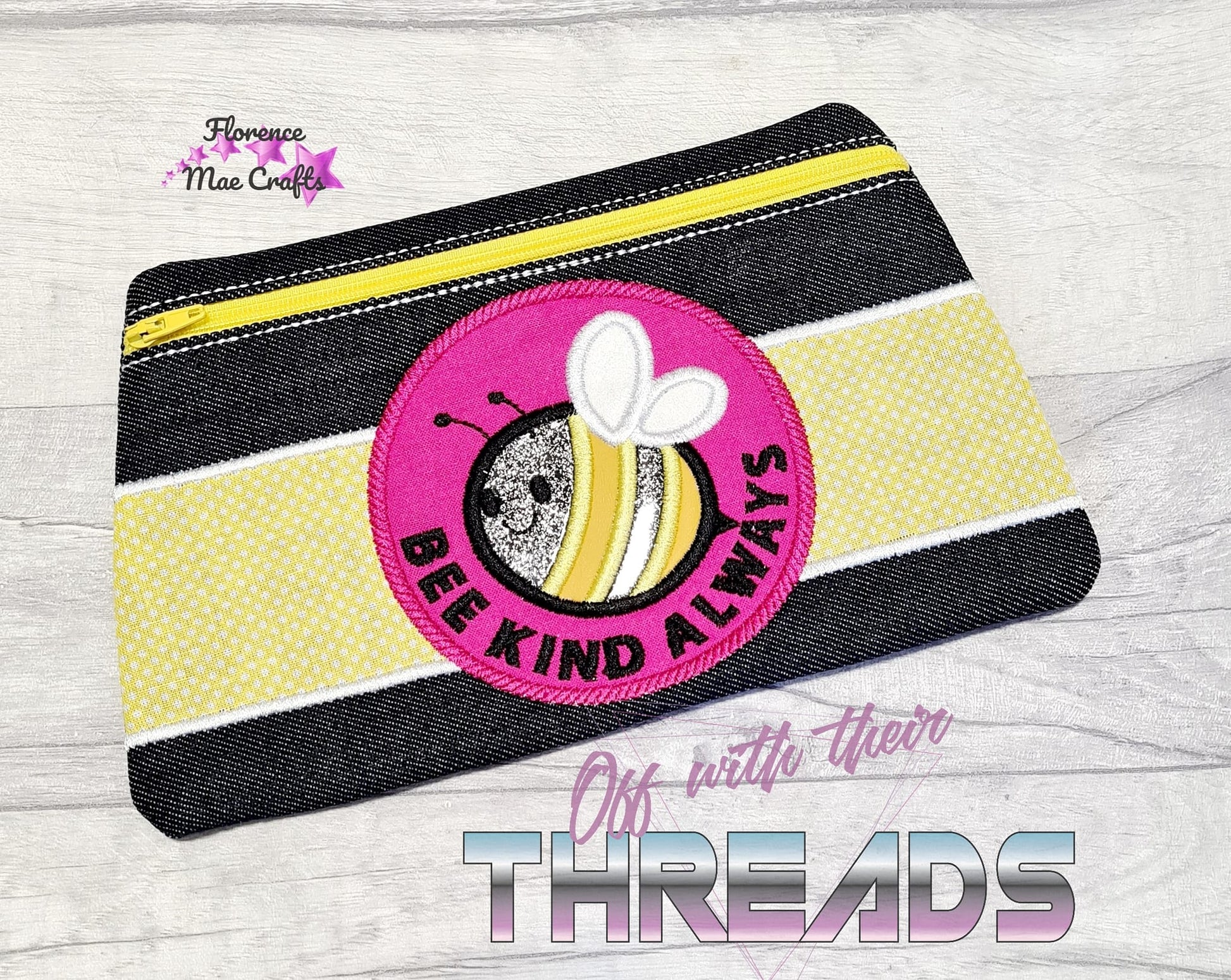 DIGITAL DOWNLOAD Applique Bee Kind Always Zipper Bag Lined and Unlined