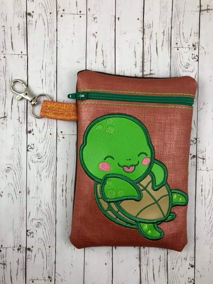 DIGITAL DOWNLOAD ITH Applique Sea Turtle Zipper Bag Lined and Unlined