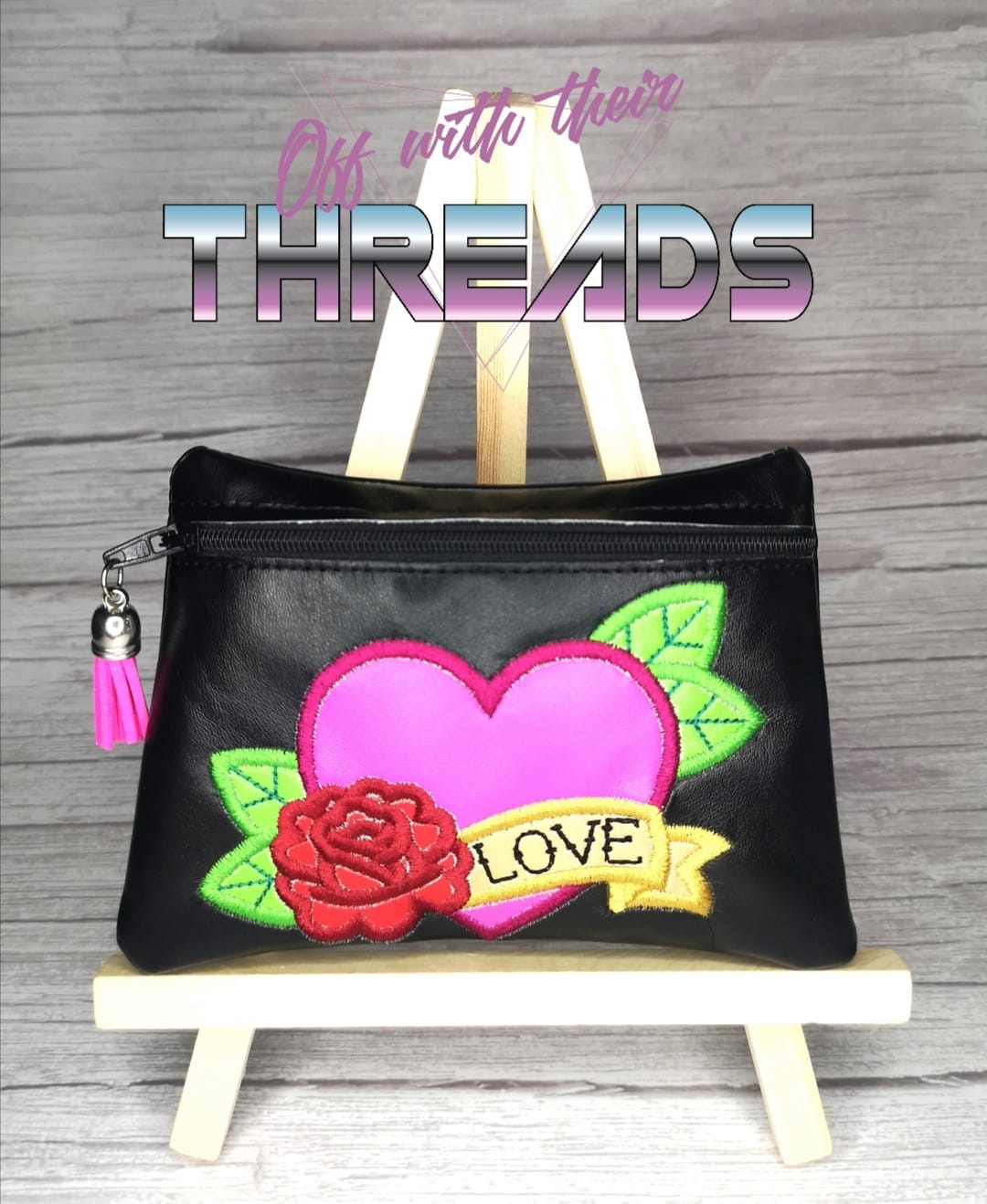 DIGITAL DOWNLOAD Tattoo Heart Clutch Applique Zipper Bag Lined and Unlined
