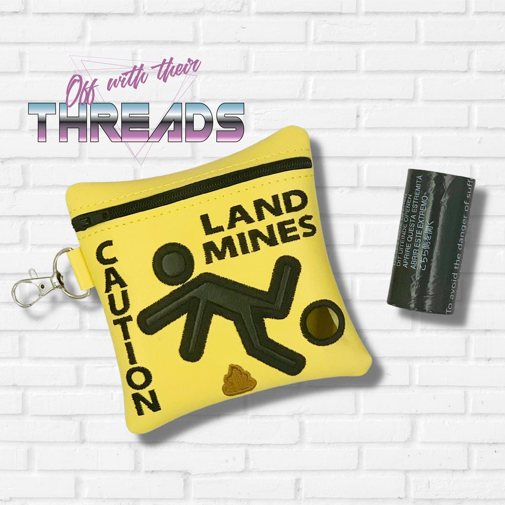 DIGITAL DOWNLOAD 5x5 Applique Caution Land Mines Poo Bag Zippered Bag and 4x4 Stand Alone