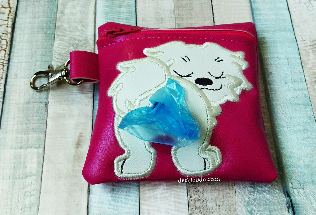 DIGITAL DOWNLOAD 5x5 ITH Applique Maltese Bum Poo Zipper Bag Lined and Unlined
