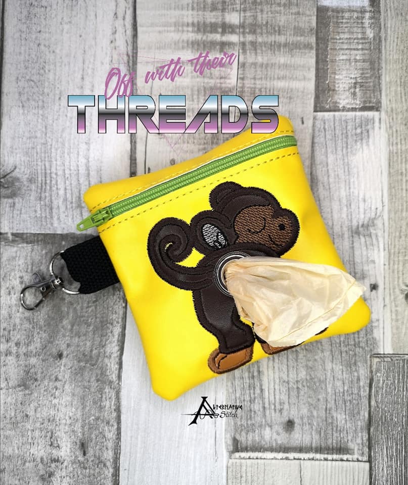 DIGITAL DOWNLOAD 5x5 ITH Applique Monkey Bum Poo Zipper Bag Lined and Unlined 2021