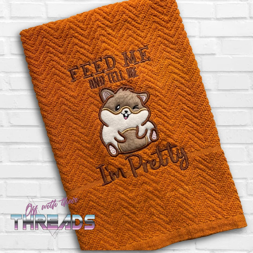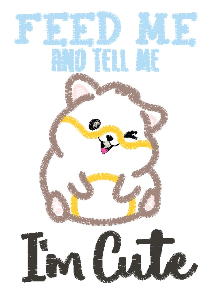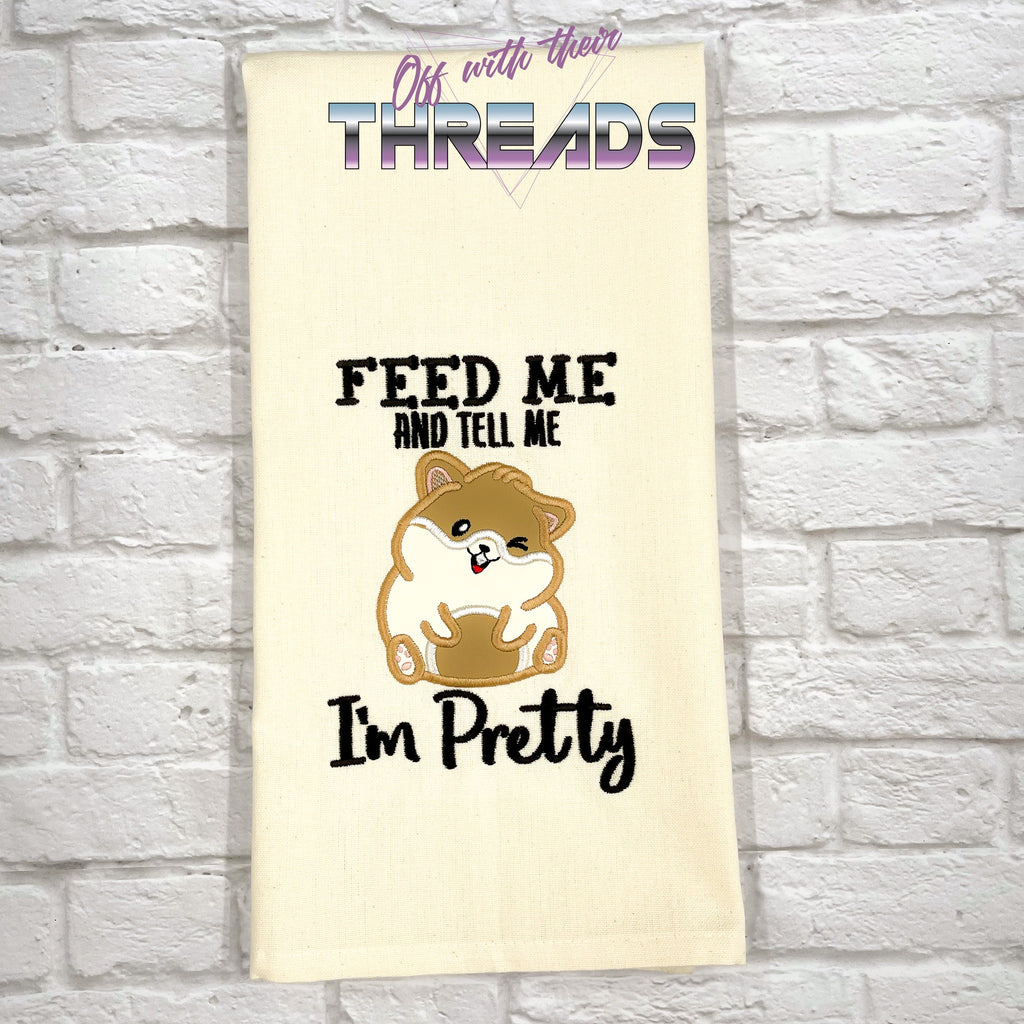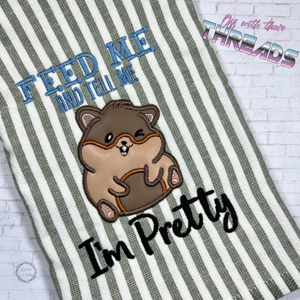 DIGITAL DOWNLOAD Applique Feed Me and Tell Me I'm Cute Pretty Hamster 3 SIZES 2 VERSIONS INCLUDED
