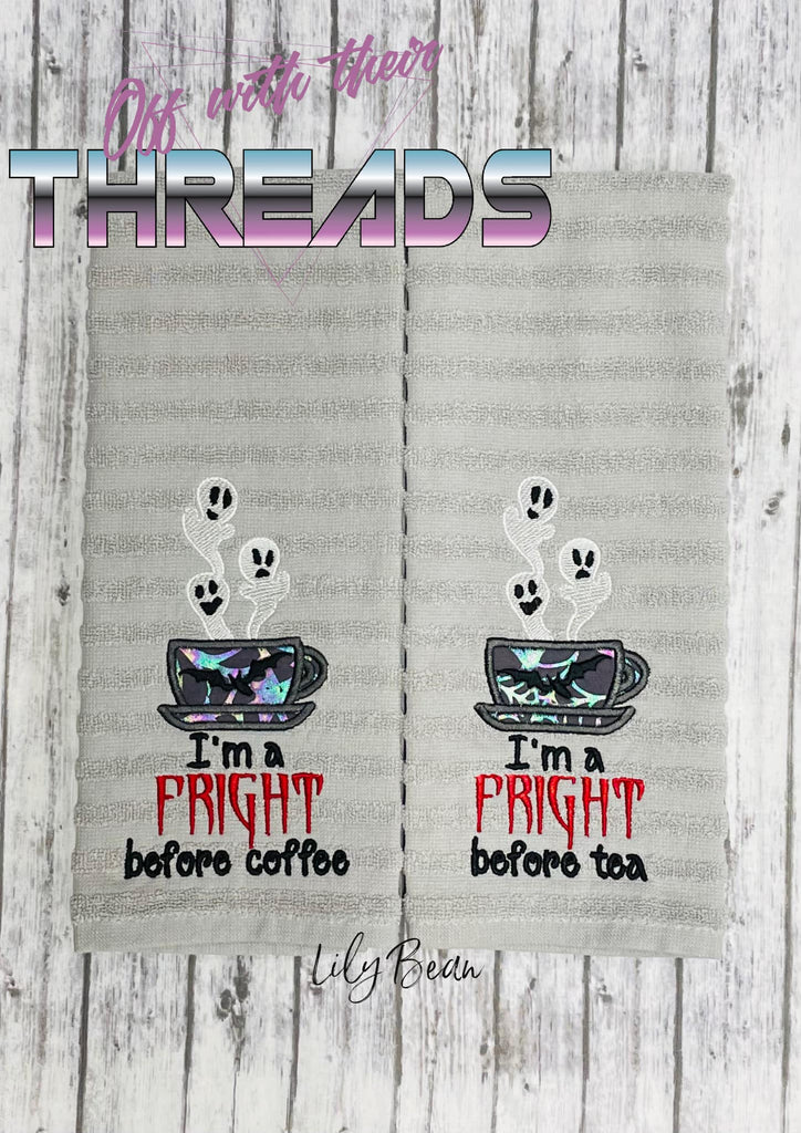 DIGITAL DOWNLOAD Applique I'm A Fright Before Coffee Tea 5 SIZES 2 VERSIONS INCLUDED