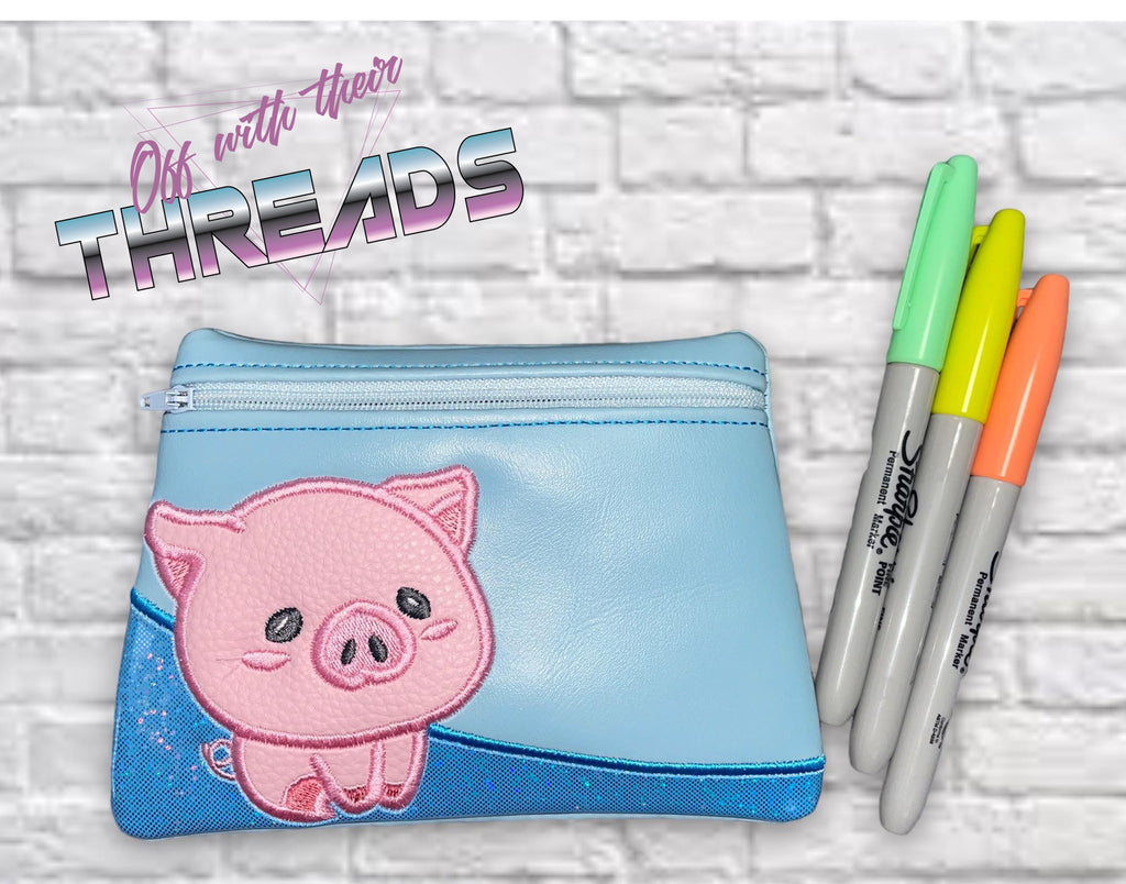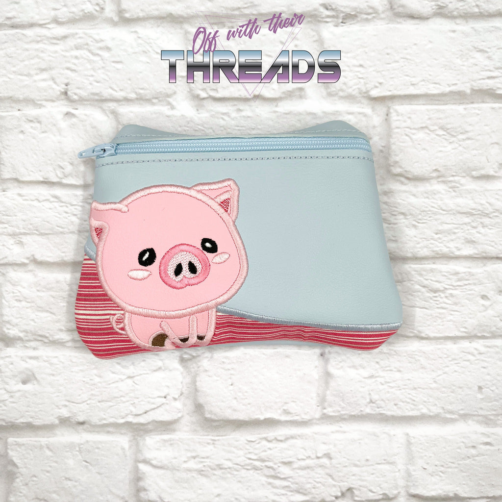 DIGITAL DOWNLOAD Applique Piglet Clutch Zipper Bag Lined and Unlined
