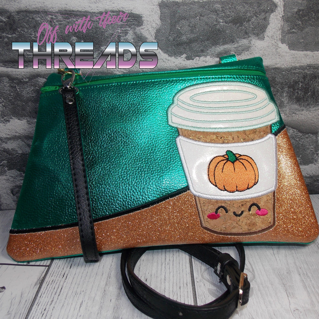 DIGITAL DOWNLOAD Applique Pumpkin Spice Coffee Clutch Zipper Bag Lined and Unlined