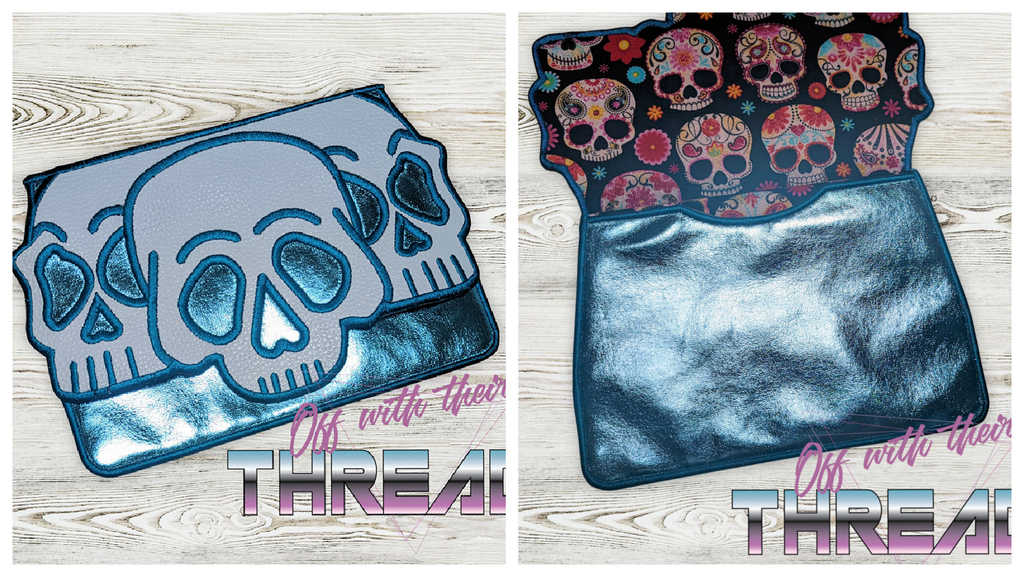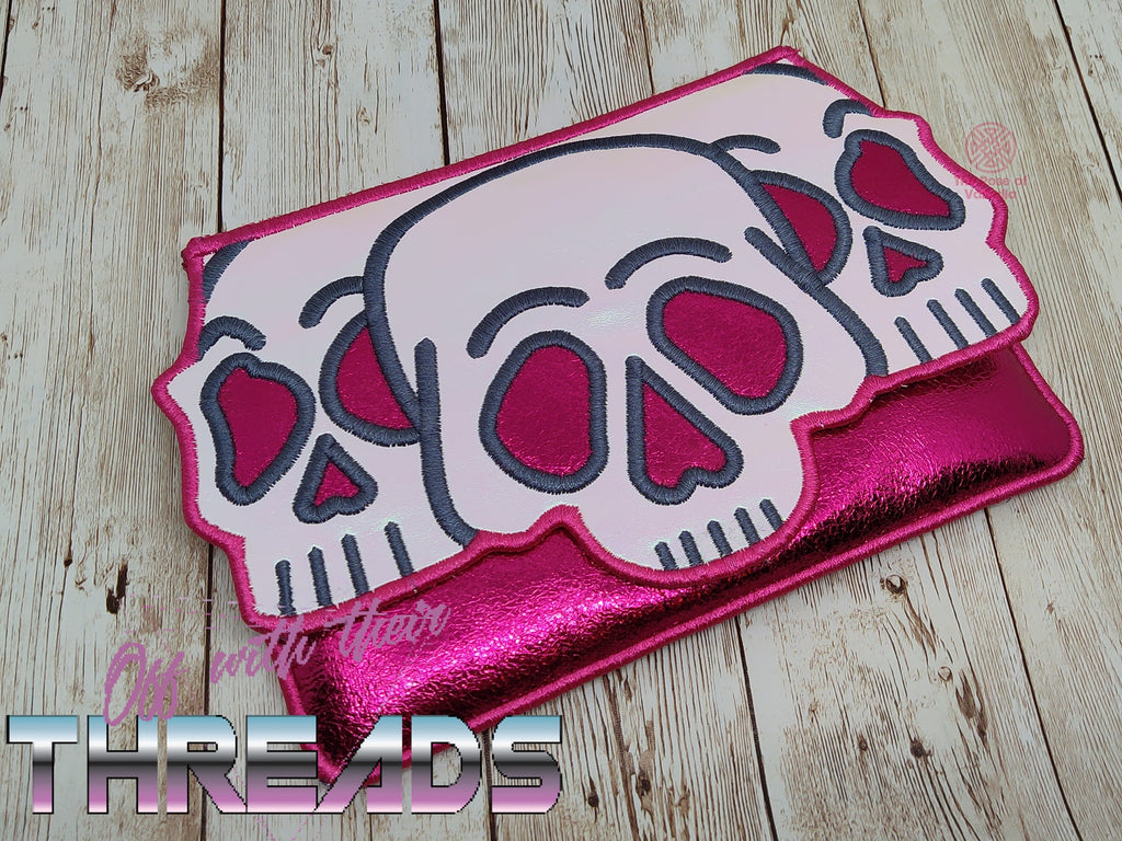 DIGITAL DOWNLOAD Applique Skull Trio Envelope Clutch Lined and Unlined