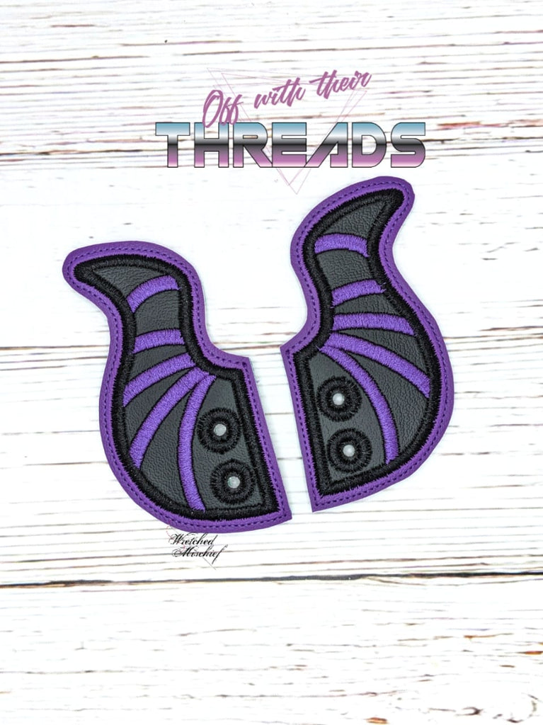 DIGITAL DOWNLOAD Applique Sorceress Horns Shoe Boot Wings SATIN AND BEAN STITCH EYELET OPTIONS INCLUDED