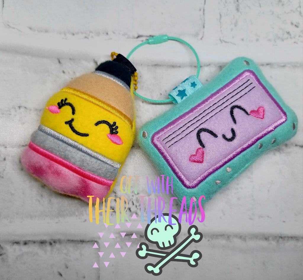 DIGITAL DOWNLOAD Cassette and Pencil Buddies Key Chain Squishy Plush Set 2 DESIGNS INCLUDED