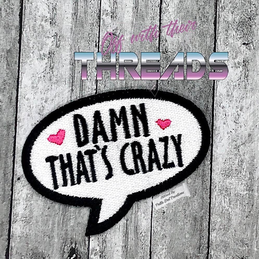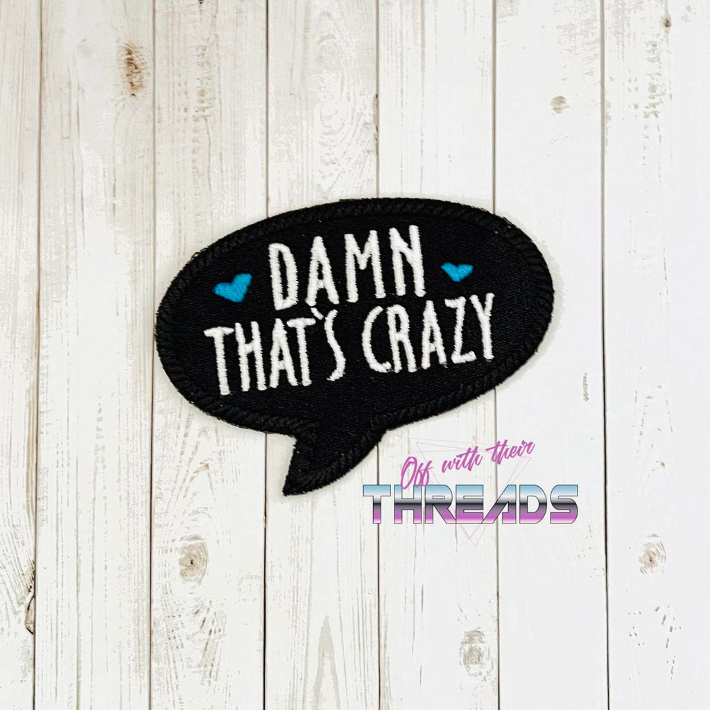 DIGITAL DOWNLOAD Damn That's Crazy Patch 3 SIZES INCLUDED 2 OPTIONS INCLUDED