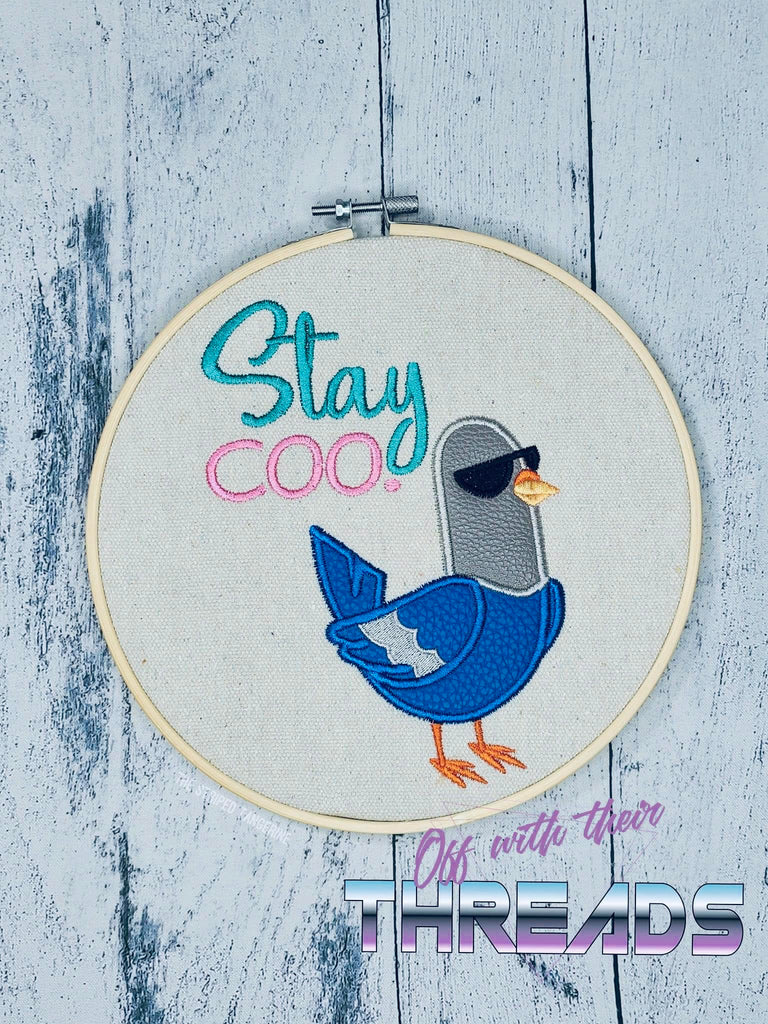 DIGITAL DOWNLOAD ITH Applique Stay Coo Pigeon 4 SIZES INCLUDED