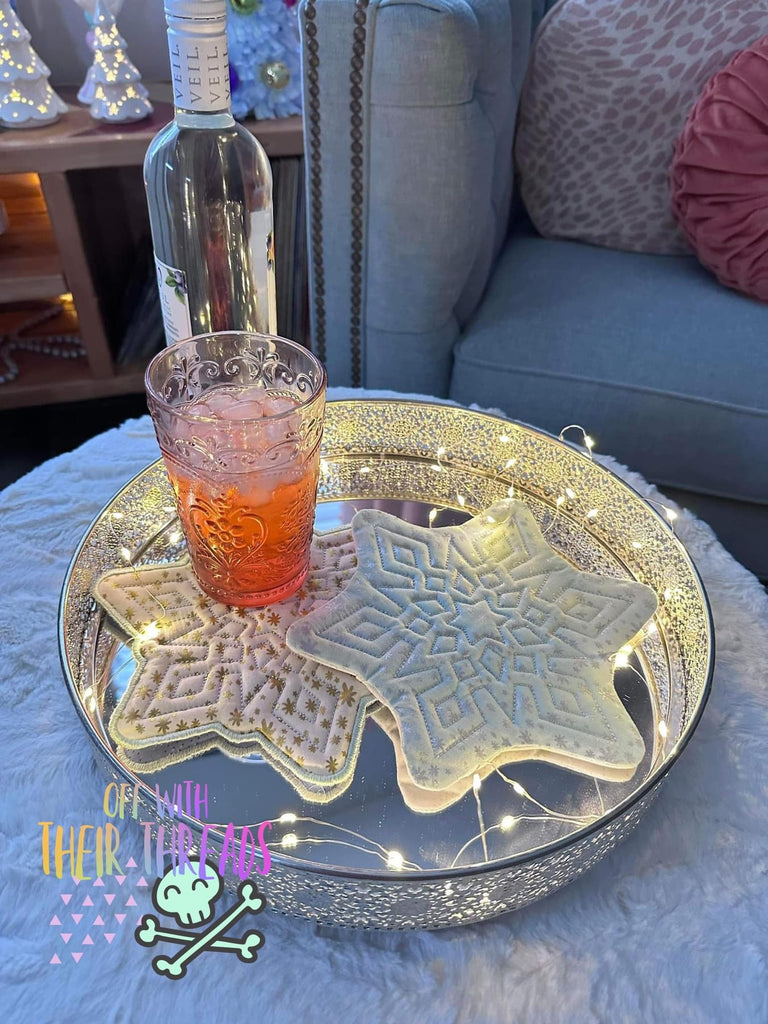 DIGITAL DOWNLOAD Snowflake Shaped Quilted Mug Rug Snack Mat Set 4 SIZES INCLUDED INCLUDES BOTH SATIN AND ENVELOPE FINISHES