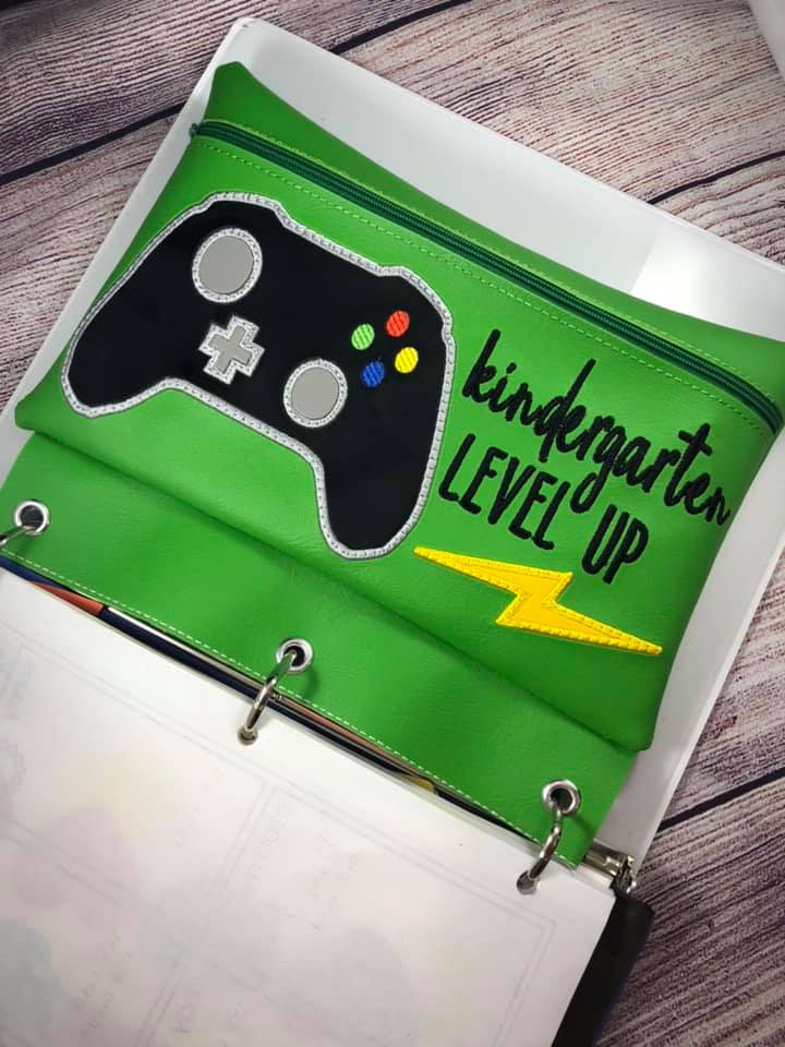 DIGITAL DOWNLOAD ITH Pencil Pouch Kindergarten Level Up Applique Binder Bag 4 Sizes Included