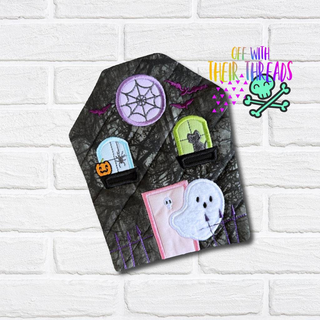 DIGITAL DOWNLOAD Applique Haunted House Quilted Mug Rug Snack Mat Coaster Set 5 SIZES INCLUDED ENVELOPE AND TURN HOLE OPTIONS