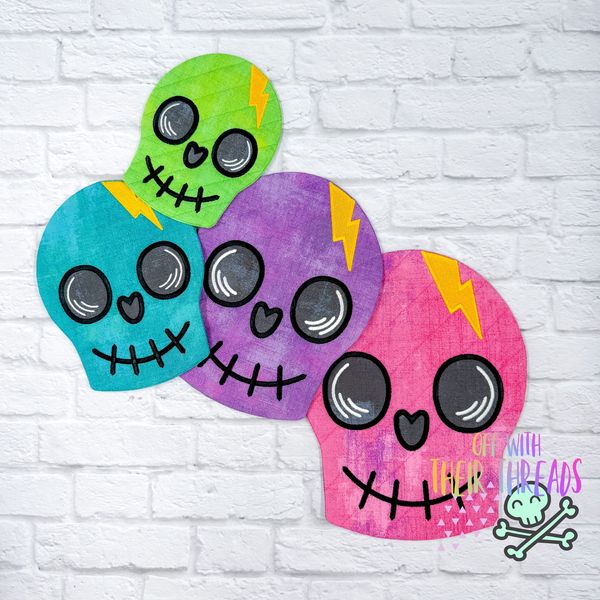 DIGITAL DOWNLOAD Applique Skull Quilted Mug Rug Snack Mat Coaster Set 5 SIZES INCLUDED ENVELOPE STYLE