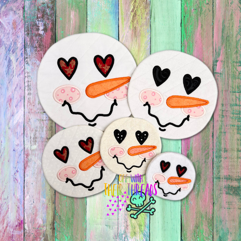 DIGITAL DOWNLOAD Applique Snowman Quilted Mug Rug Snack Mat Coaster Set 7 SIZES INCLUDED ENVELOPE STYLE