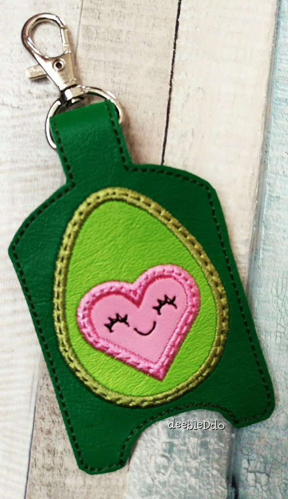 DIGITAL DOWNLOAD Applique Heart Avocado Sanitizer Holder Set Eyelet and Snap Tab Options Included