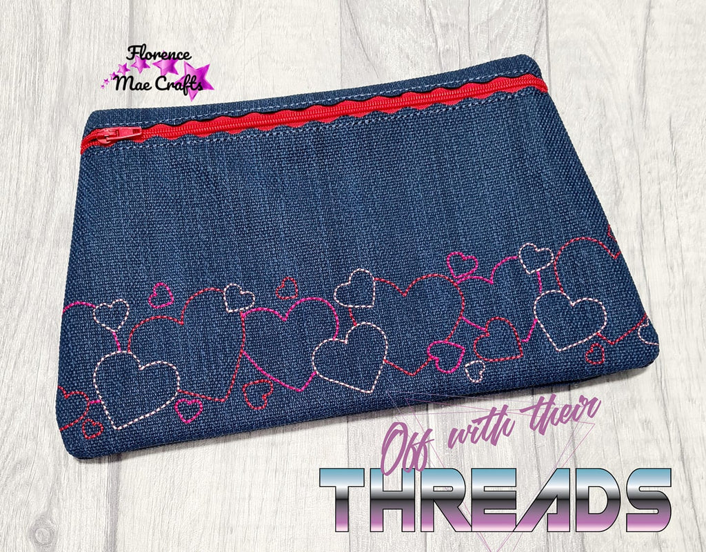 DIGITAL DOWNLOAD Heart Border Clutch Zipper Bag Lined and Unlined