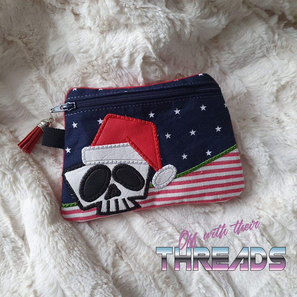 DIGITAL DOWNLOAD Santa Skull Clutch Applique Zipper Bag Lined and Unlined