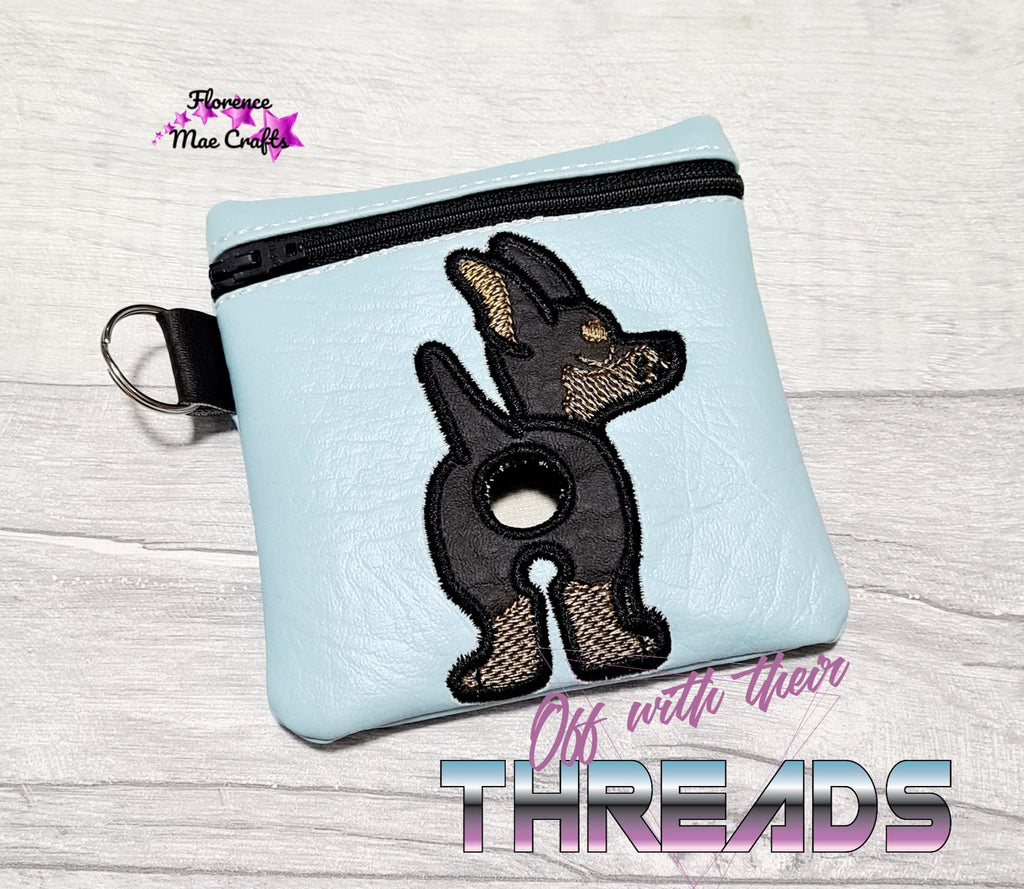 DIGITAL DOWNLOAD 5x5 ITH Applique Doberman Bum Poo Zipper Bag Lined and Unlined Sketchy Fill