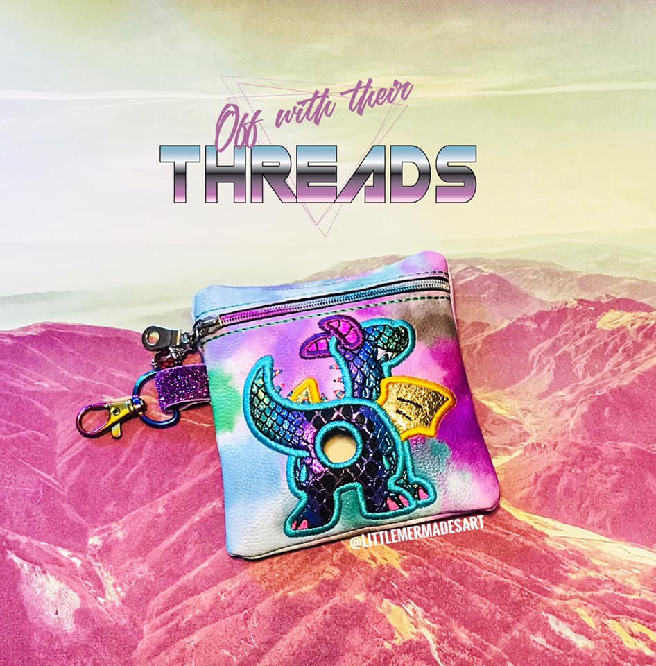 DIGITAL DOWNLOAD 5x5 ITH Applique Dragon Bum Poo Zipper Bag Lined and Unlined 2021