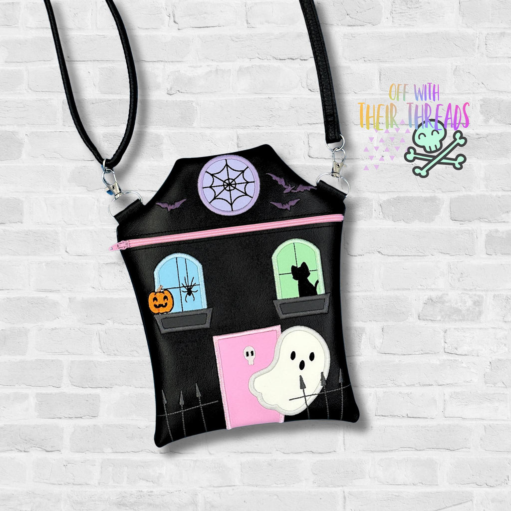 DIGITAL DOWNLOAD Applique Haunted House Zipper Bag Lined and Unlined
