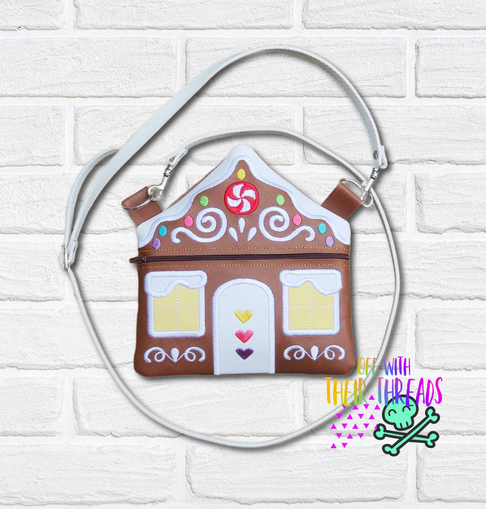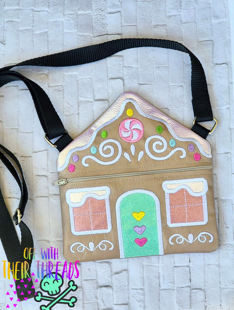 DIGITAL DOWNLOAD Applique Gingerbread House Zipper Bag Lined and Unlined
