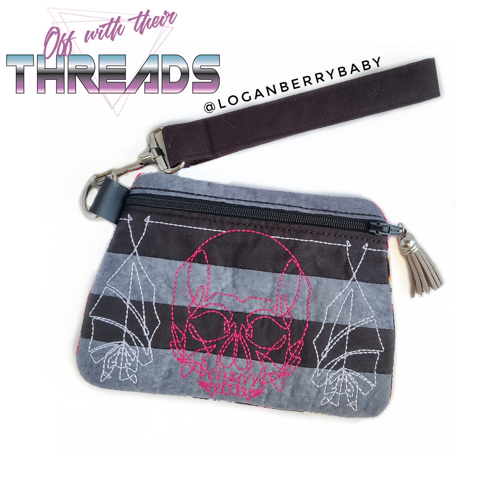 DIGITAL DOWNLOAD Quilted Vampire Bat Clutch Applique Zipper Bag LINED
