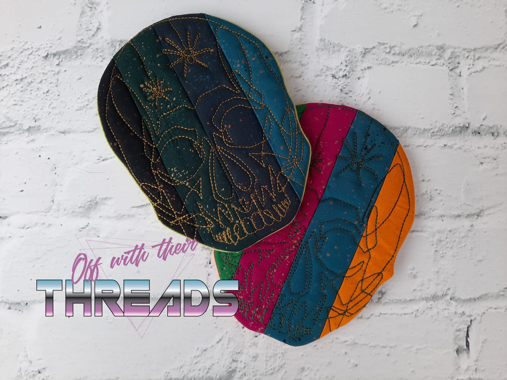 DIGITAL DOWNLOAD Quilted Skull Mug Rug 4 Sizes Included ENVELOPE AND TURN HOLE OPTIONS