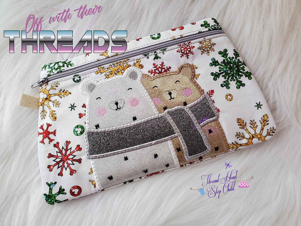 DIGITAL DOWNLOAD Cozy Bears Clutch Applique Zipper Bag Lined and Unlined