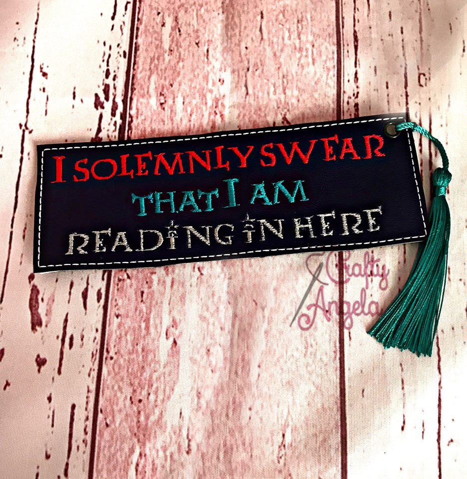 DIGITAL DOWNLOAD 5x7 I Solemnly Swear That I Am Reading In Here Bookmark ITH Embroidery Design