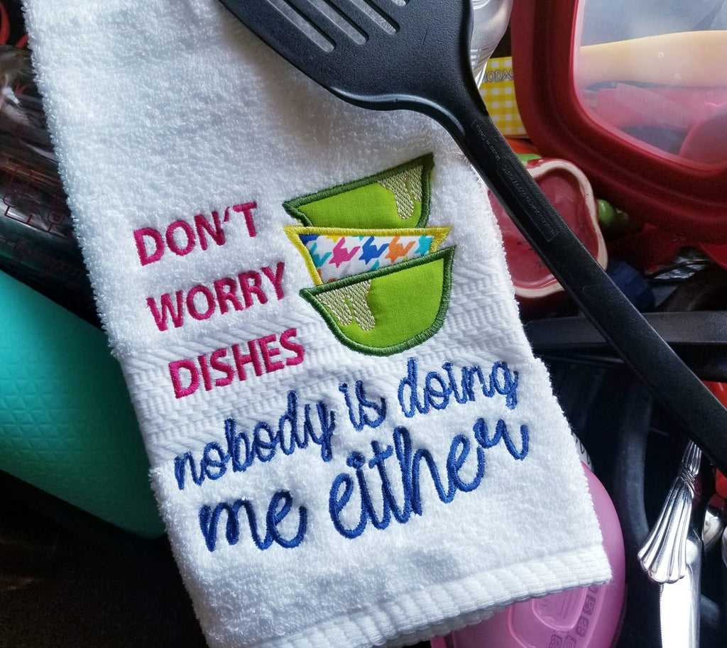 5x5 and Up DIGITAL DOWNLOAD 4 Sizes Applique Don't Worry Dishes Embroidery Design