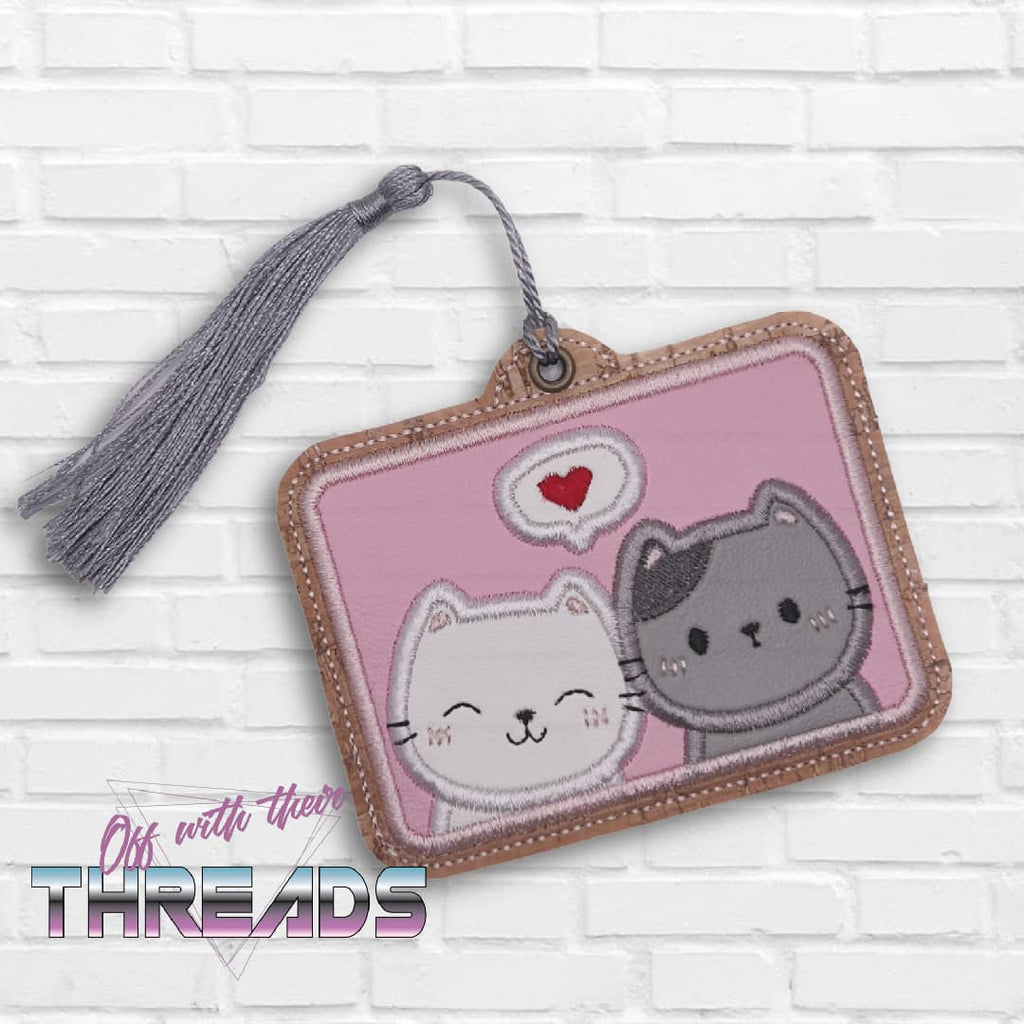 DIGITAL DOWNLOAD Applique Heart Kitties Bookmark Ornament Gift Tag