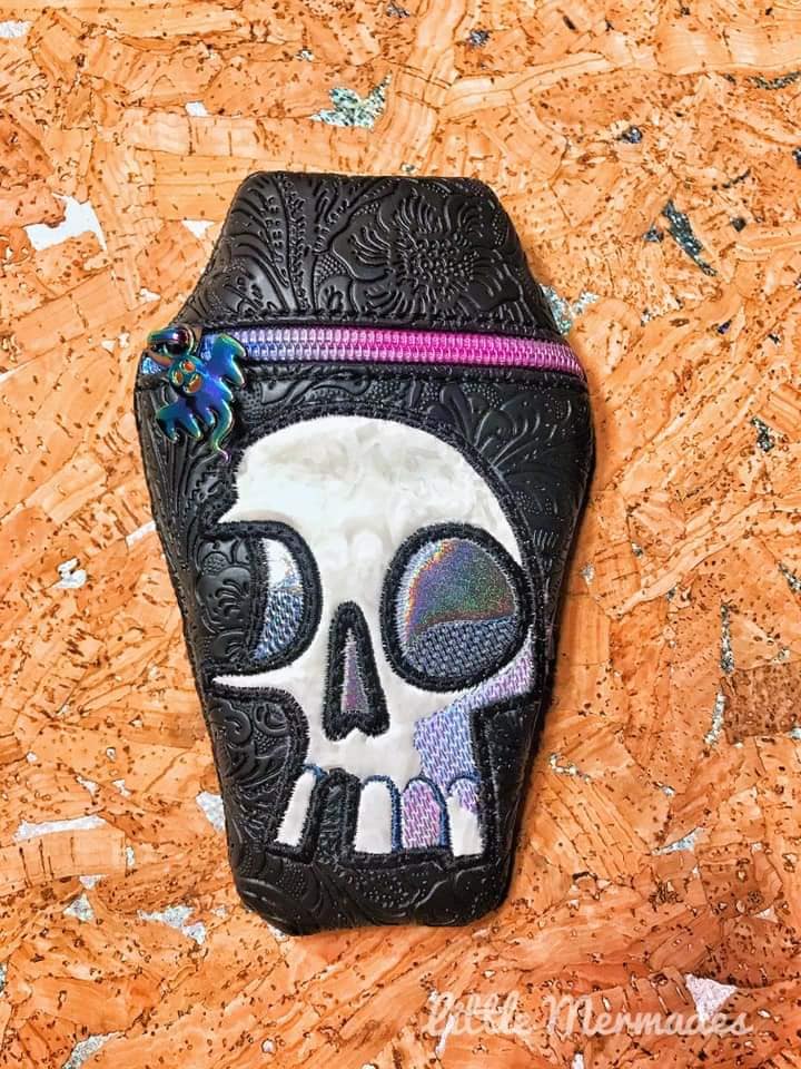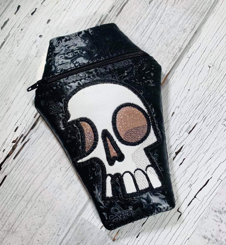DIGITAL DOWNLOAD Applique Skull Coffin Zipper Bag