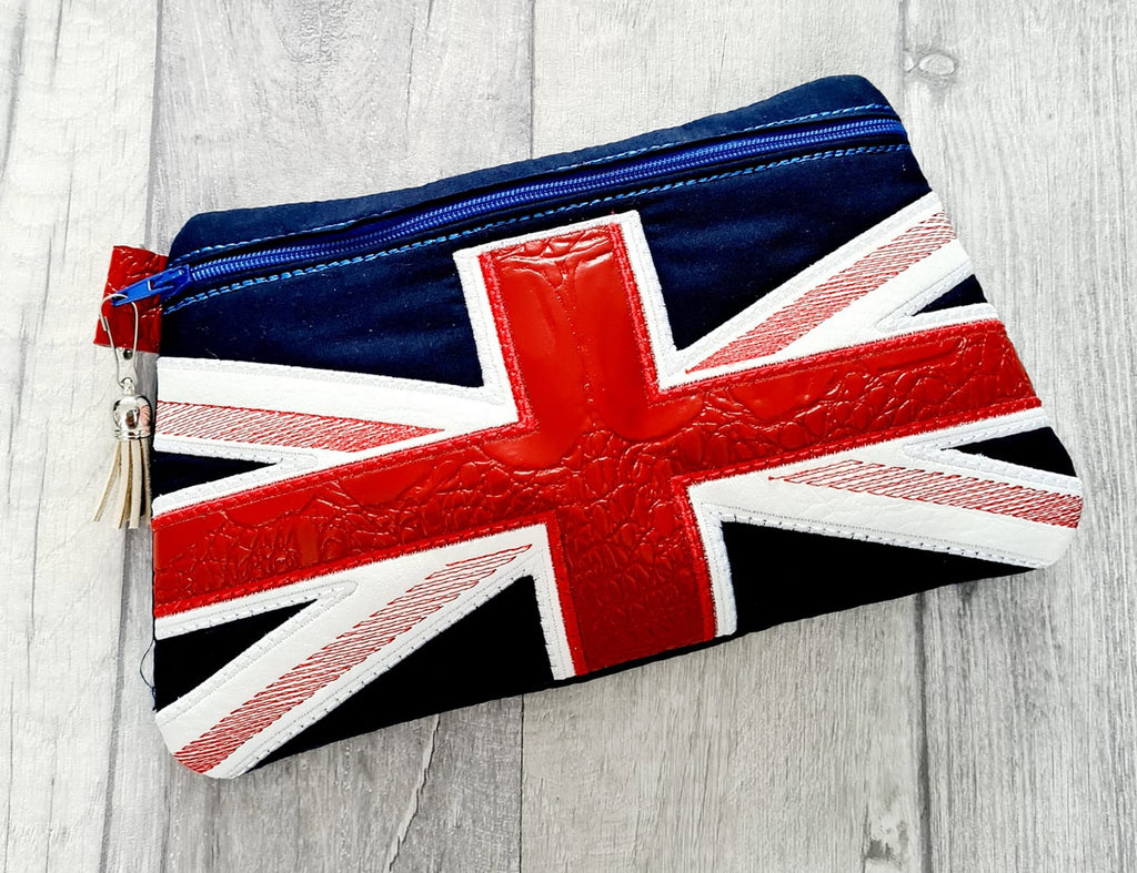 DIGITAL DOWNLOAD Union Jack Clutch Zipper Bag Applique Lined and Unlined