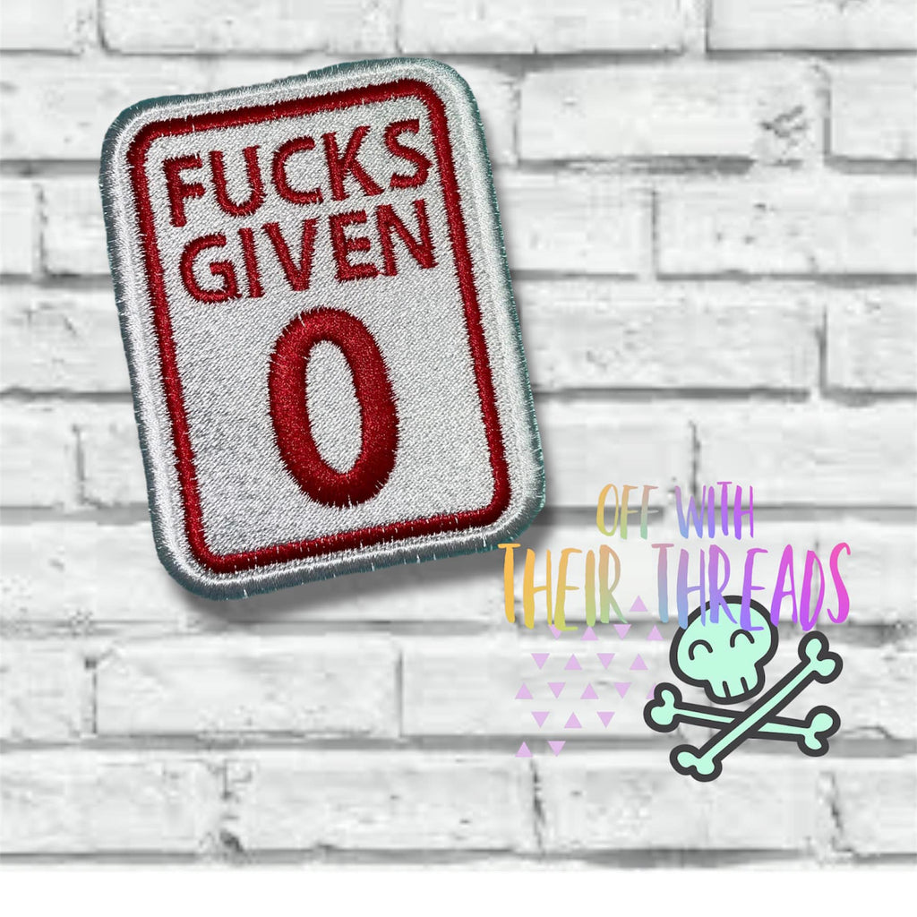 DIGITAL DOWNLOAD Zero Fs Given Patch 3 SIZES INCLUDED